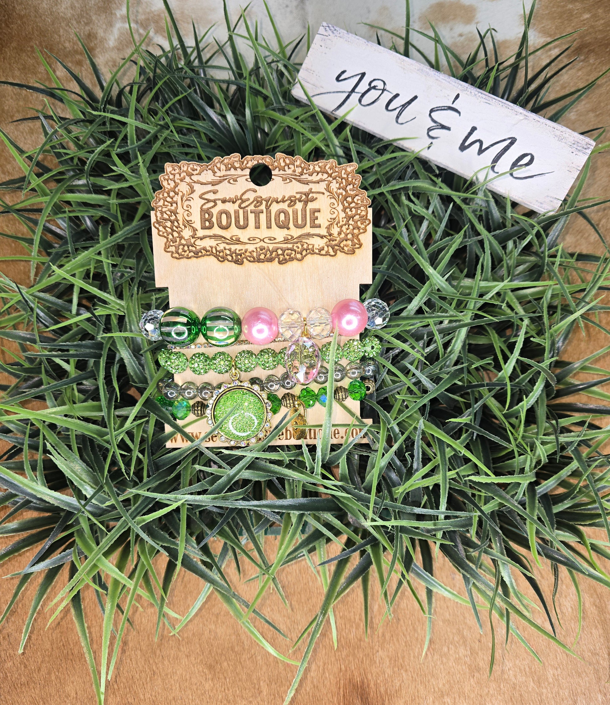 The mix of vibrant greens with feminine blush makes this stack perfect for adding a pop of color to your everyday denim or dressing up your favorite boutique look ✨ It’s playful, bold, and just the right amount of glam.