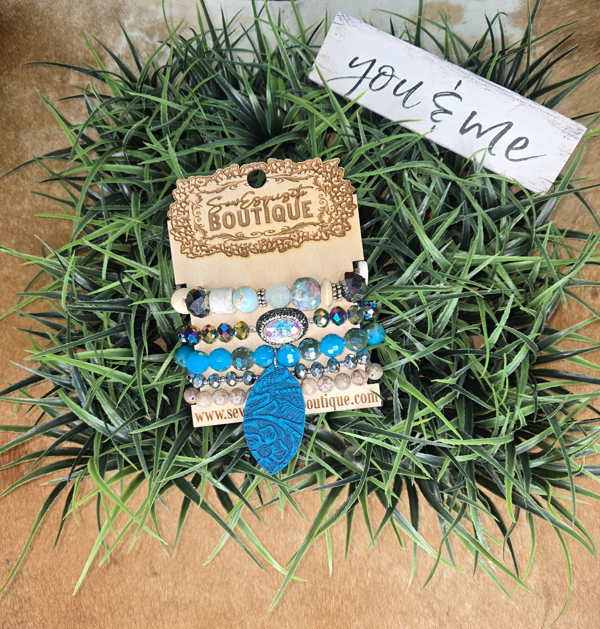 The mix of earthy neutrals with rich blues makes this stack perfect for pairing with denim, boots, and all your favorite boutique outfits 💙 Whether you’re heading to a market, date night, or just want to add that western glam touch — this set delivers.