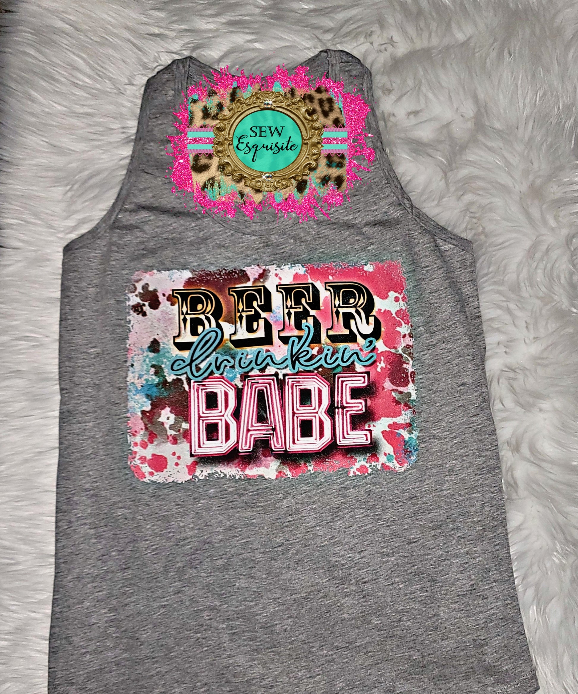 Beer Babe Tank is 100%Ring-spun Cotton, with the image printed directly onto the T-Shirt. Which will make the image last you through out several washes following the proper care instructions.