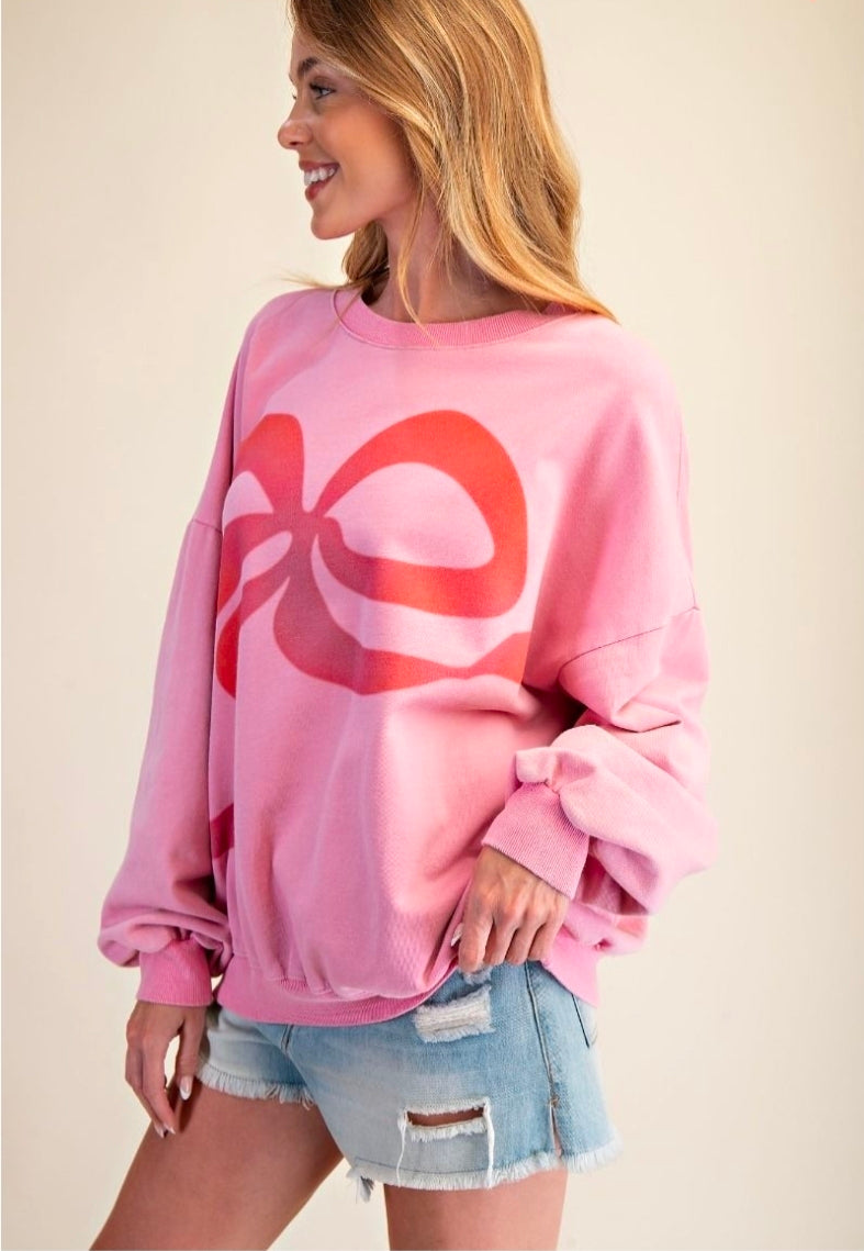 BOW PRINT FRONT WASHED TERRY PULLOVER
