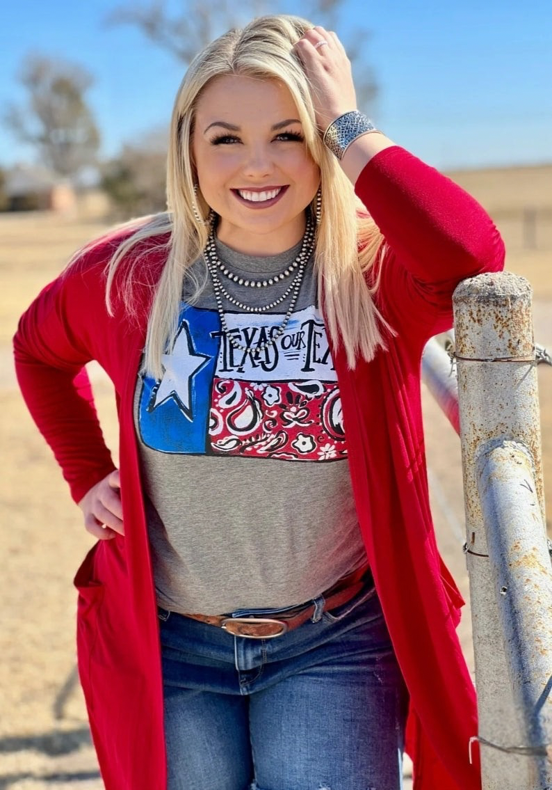 You loved our red milan cardigan, cherry red cardigan, and you will love this one just as much! This ruby red cardigan is softer than the milan and is the perfect red for Christmas, Valentine's Day, or any occasion!