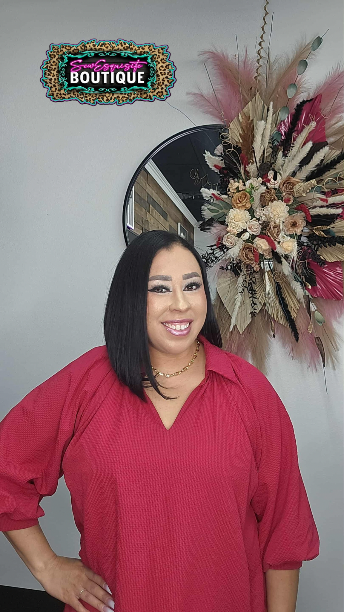 Add a pop of color to your wardrobe with this vibrant crimson tunic dress! Designed with a textured fabric, collared neckline, and roomy pockets, it’s the perfect mix of comfort and style. Pair with leggings or wear as a dress for a bold, effortless look.