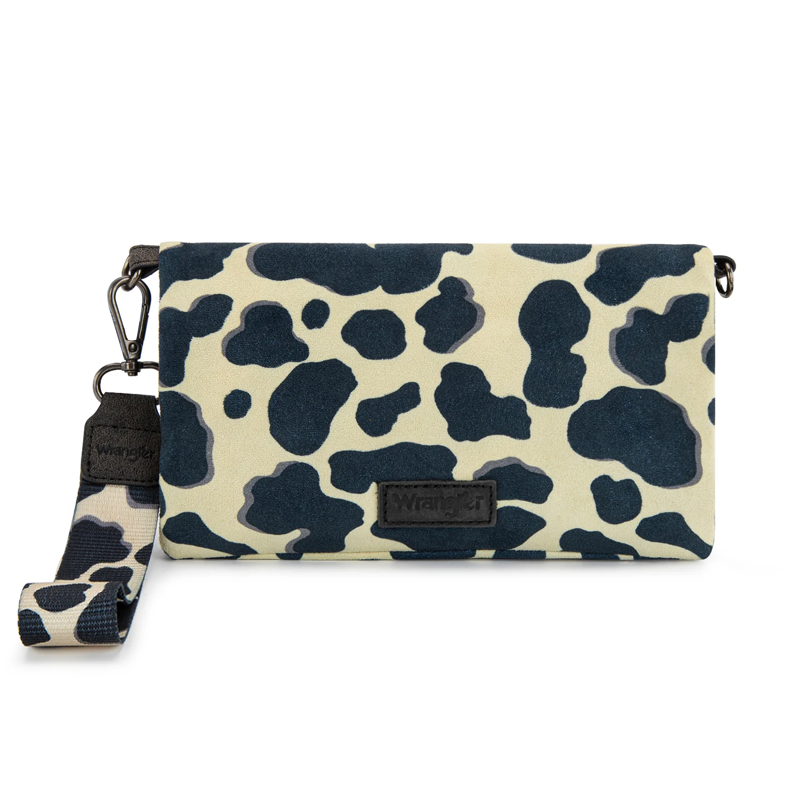 Wrangler Cow Print Wallet/Wristlet/Crossbody - BLACK