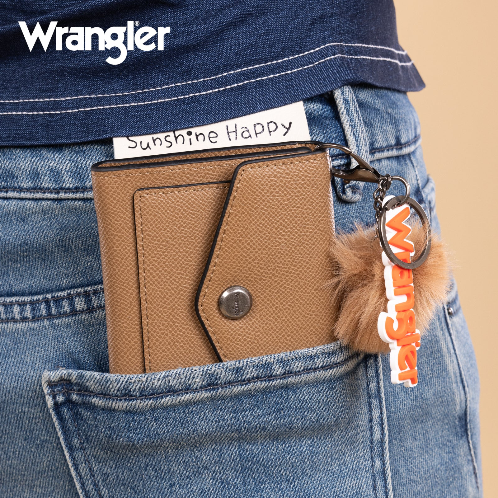 Wrangler Tri-Fold Wallet with Keyring Pom Pom - DARK KHAKI