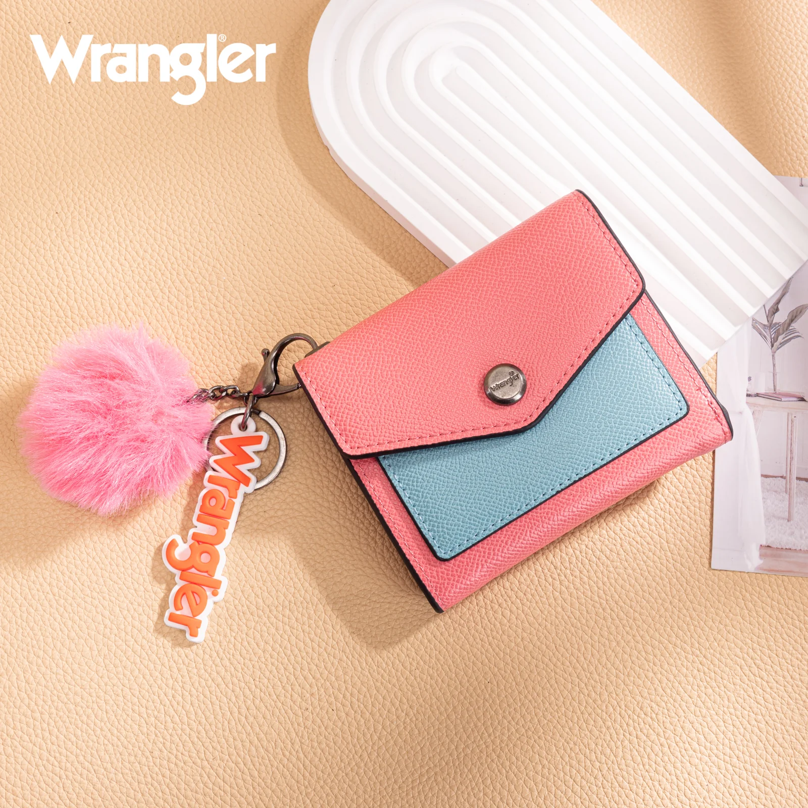 Wrangler Tri-Fold Wallet with Keyring Pom Pom - PINK/BLUE